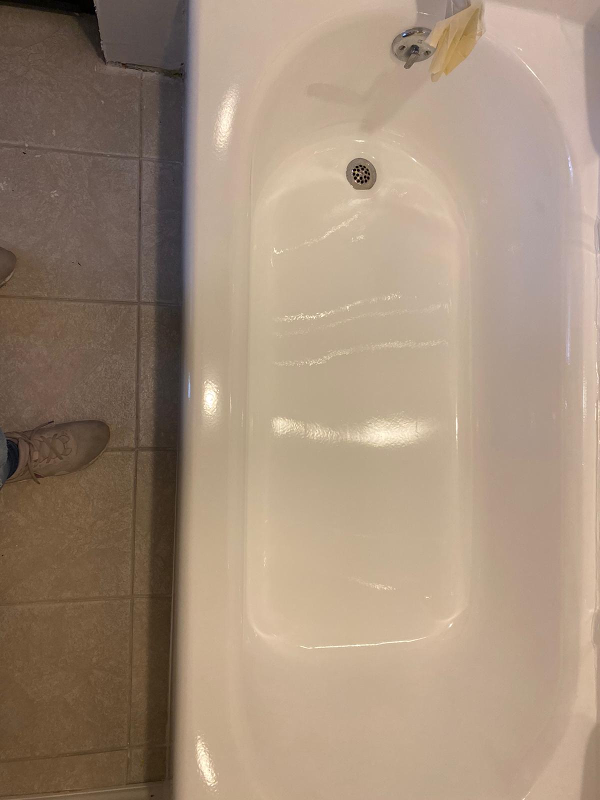 We refresh the Surface of a worn, damaged bathtub to a like-new condition, this includes removing the drain and repairing any damaged areas.