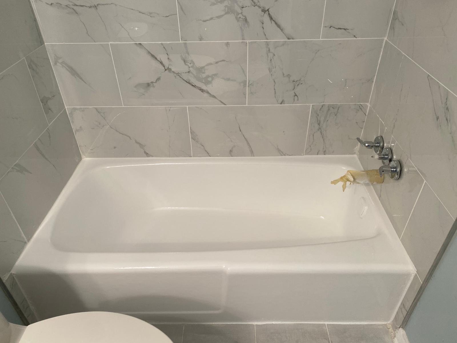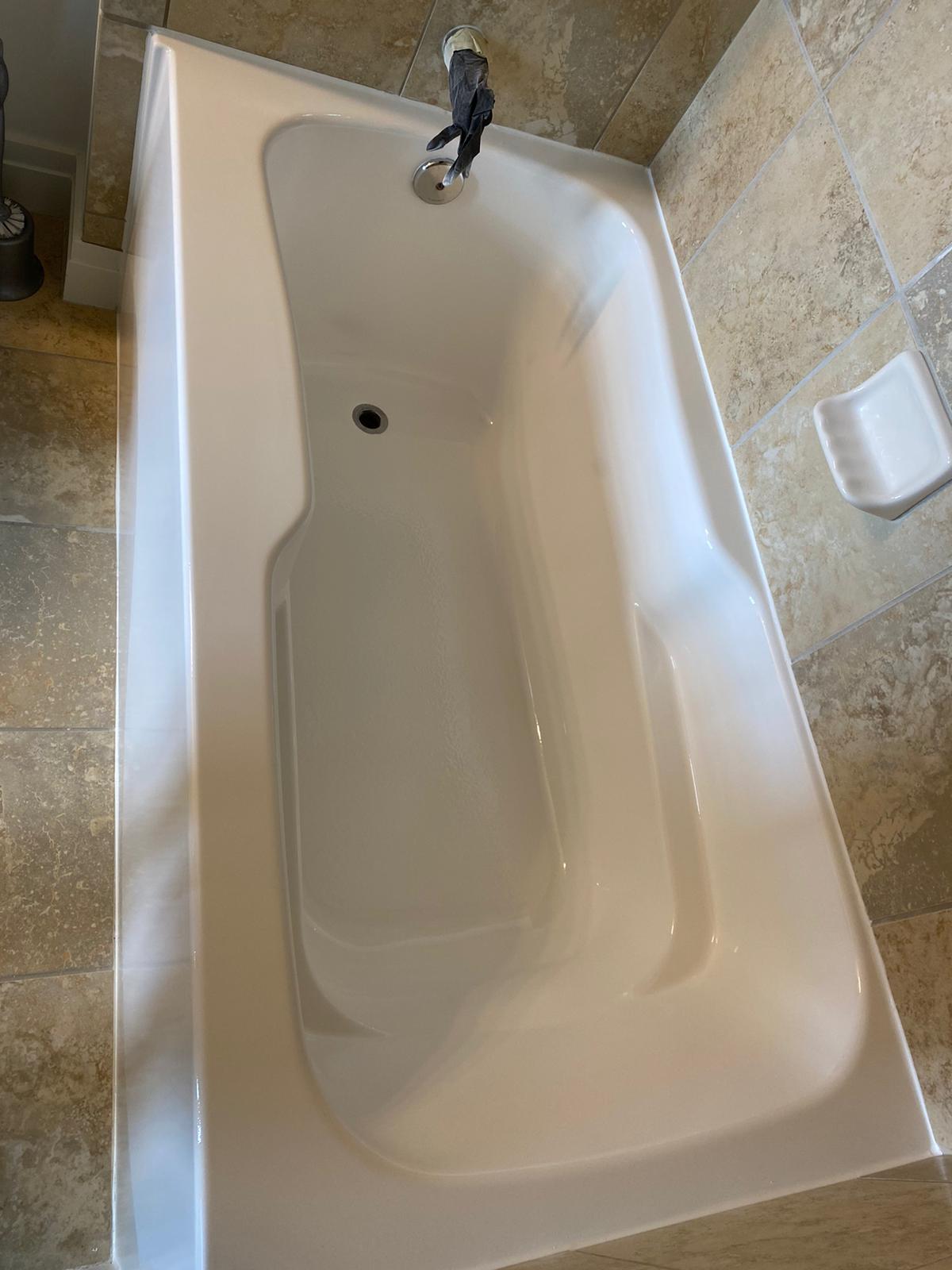 We refresh the Surface of a worn, damaged bathtub to a like-new condition, this includes removing the drain and repairing any damaged areas.